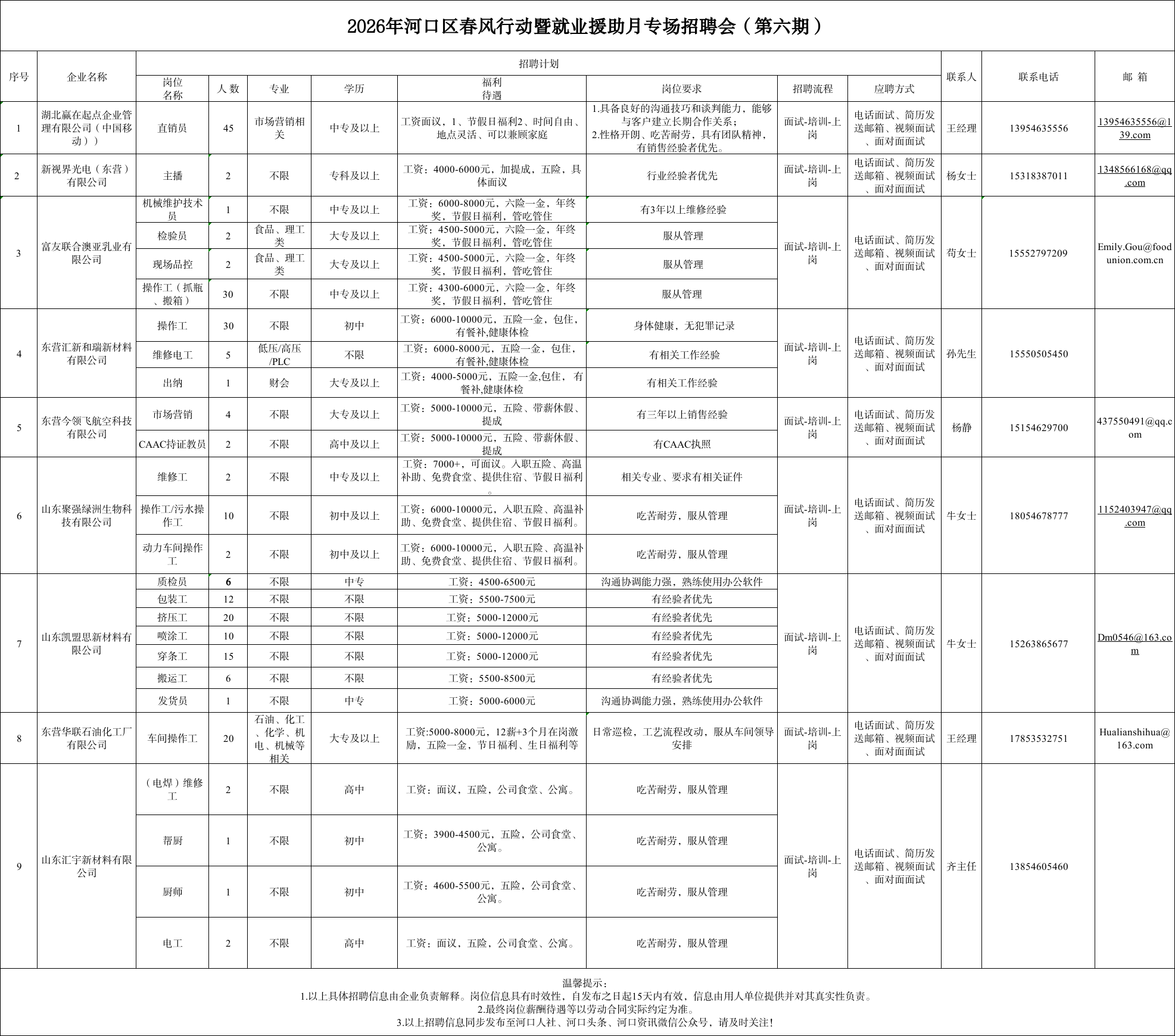 2026年河口区春风行动暨就业援助月专场招聘会(第六期)